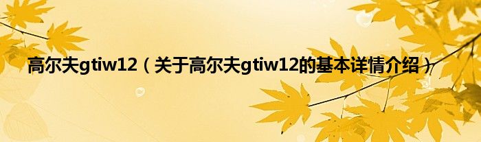 本文关于高尔夫gtiw12的基本详情介绍就讲解完毕,希望对大家有所帮助。