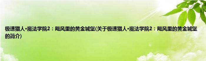 大家好,极速猎人·魔法学院2:飓风里的黄金城堡,关于极速猎人·魔法学院2:飓风里的黄金城堡的简介很多人还不知道,现在让我们一起来看看吧!
