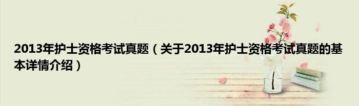 本文关于2013年护士资格考试真题的基本详情介绍就讲解完毕,希望对大家有所帮助。