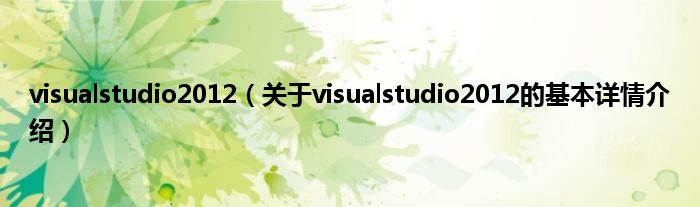 本文关于visualstudio2012的基本详情介绍就讲解完毕,希望对大家有所帮助。