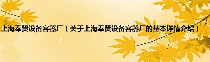 本文关于上海奉贤设备容器厂的基本详情介绍就讲解完毕,希望对大家有所帮助。