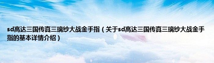 本文关于sd高达三国传真三璃纱大战金手指的基本详情介绍就讲解完毕,希望对大家有所帮助。