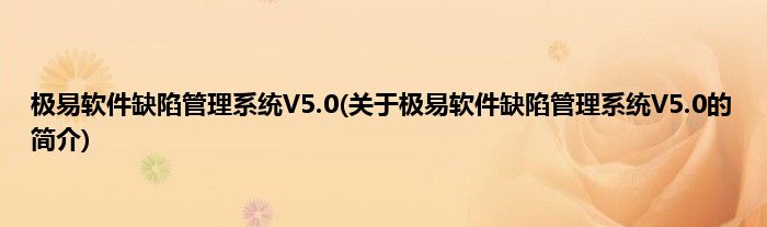 大家好,极易软件缺陷管理系统V5.0,关于极易软件缺陷管理系统V5.0的简介很多人还不知道,现在让我们一起来看看吧!