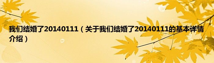 本文关于我们结婚了20140111的基本详情介绍就讲解完毕,希望对大家有所帮助。