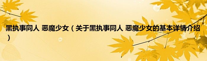 本文关于黑执事同人 恶魔少女的基本详情介绍就讲解完毕,希望对大家有所帮助。