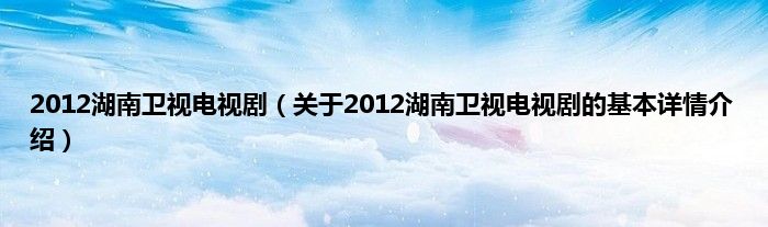 2012湖南卫视电视剧(关于2012湖南卫视电视剧的基本详情介绍)
