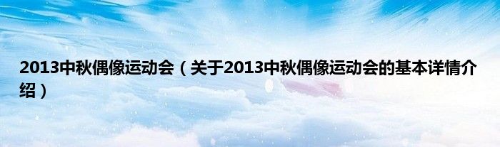 本文关于2013中秋偶像运动会的基本详情介绍就讲解完毕,希望对大家有所帮助。