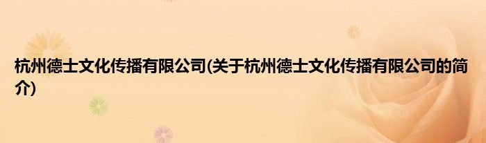 本文关于杭州德士文化传播有限公司的简介就讲解完毕,希望对大家有所帮助。