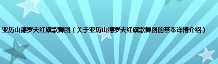 大家好我是小蝌蚪,亚历山德罗夫红旗歌舞团,关于亚历山德罗夫红旗歌舞团的基本详情介绍很多人还不知道,那么现在让我们一起来看看吧!