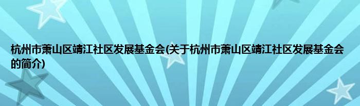本文关于杭州市萧山区靖江社区发展基金会的简介就讲解完毕,希望对大家有所帮助。