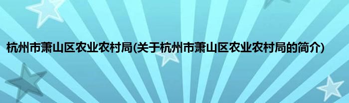 本文关于杭州市萧山区农业农村局的简介就讲解完毕,希望对大家有所帮助。