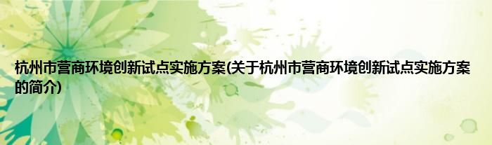 大家好,杭州市营商环境创新试点实施方案,关于杭州市营商环境创新试点实施方案的简介很多人还不知道,现在让我们一起来看看吧!