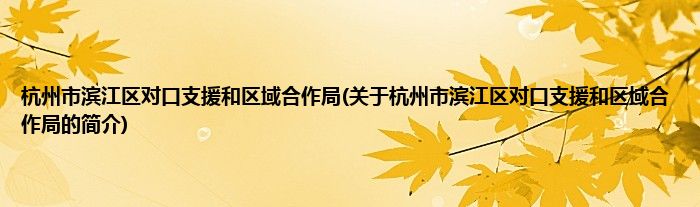 本文关于杭州市滨江区对口支援和区域合作局的简介就讲解完毕,希望对大家有所帮助。