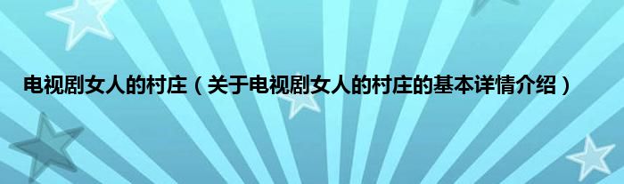 本文关于电视剧女人的村庄的基本详情介绍就讲解完毕,希望对大家有所帮助。