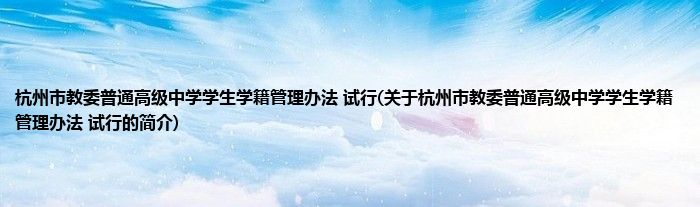 大家好,杭州市教委普通高级中学学生学籍管理办法 试行,关于杭州市教委普通高级中学学生学籍管理办法 试行的简介很多人还不知道,现在让我们一起来看看吧!