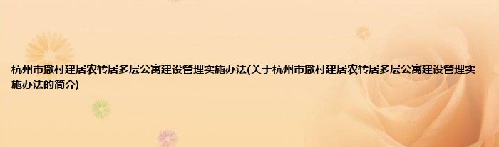 大家好,杭州市撤村建居农转居多层公寓建设管理实施办法,关于杭州市撤村建居农转居多层公寓建设管理实施办法的简介很多人还不知道,现在让我们一起来看看吧!