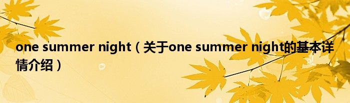 本文关于one summer night的基本详情介绍就讲解完毕,希望对大家有所帮助。