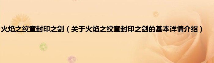 本文关于火焰之纹章封印之剑的基本详情介绍就讲解完毕,希望对大家有所帮助。