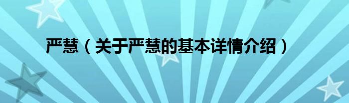 本文关于严慧的基本详情介绍就讲解完毕,希望对大家有所帮助。