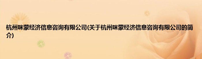 本文关于杭州咪蒙经济信息咨询有限公司的简介就讲解完毕,希望对大家有所帮助。
