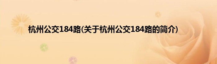 本文关于杭州公交184路的简介就讲解完毕,希望对大家有所帮助。