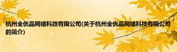 本文关于杭州全优品网络科技有限公司的简介就讲解完毕,希望对大家有所帮助。