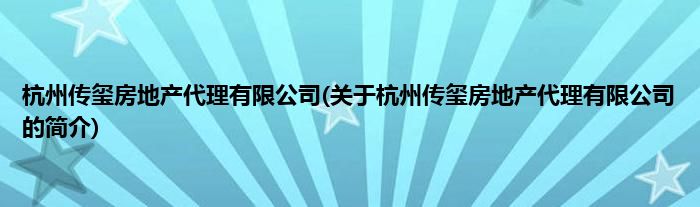 本文关于杭州传玺房地产代理有限公司的简介就讲解完毕,希望对大家有所帮助。