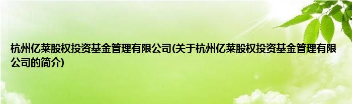 本文关于杭州亿莱股权投资基金管理有限公司的简介就讲解完毕,希望对大家有所帮助。