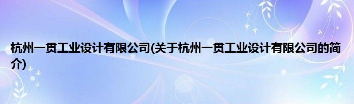 大家好,杭州一贯工业设计有限公司,关于杭州一贯工业设计有限公司的简介很多人还不知道,现在让我们一起来看看吧!