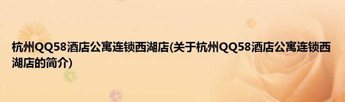 本文关于杭州QQ58酒店公寓连锁西湖店的简介就讲解完毕,希望对大家有所帮助。