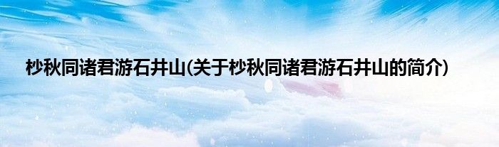 大家好,杪秋同诸君游石井山,关于杪秋同诸君游石井山的简介很多人还不知道,现在让我们一起来看看吧!