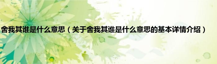 舍我其谁是什么意思(关于舍我其谁是什么意思的基本详情介绍)