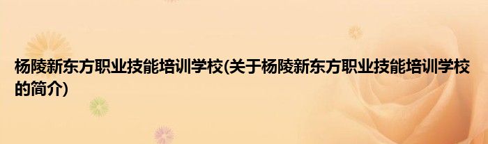 本文关于杨陵新东方职业技能培训学校的简介就讲解完毕,希望对大家有所帮助。