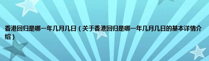 本文关于香港回归是哪一年几月几日的基本详情介绍就讲解完毕,希望对大家有所帮助。