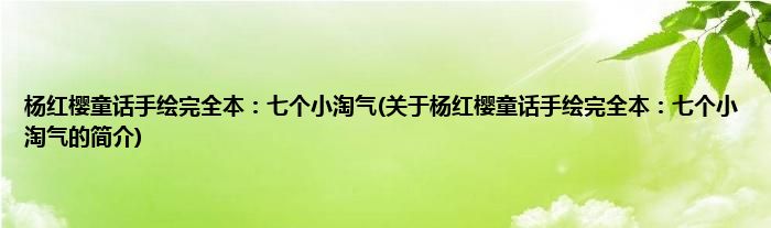 本文关于杨红樱童话手绘完全本:七个小淘气的简介就讲解完毕,希望对大家有所帮助。