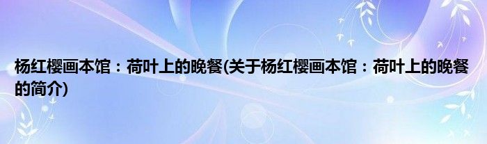 本文关于杨红樱画本馆:荷叶上的晚餐的简介就讲解完毕,希望对大家有所帮助。