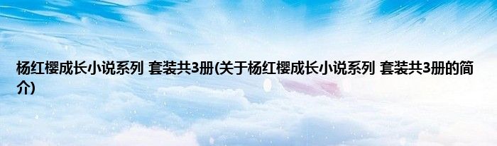 最佳答案大家好,杨红樱成长小说系列 套装共3册,关于杨红樱成长小说系列 套装共3册的简介很多人还不知道,现在让我们一起来看看吧! 1、 《杨红樱成长小说系列(套装共3册)》是2017年6月1日明天出版社出版的图书,作者是杨红樱。2、 。本文关于杨红樱成长小说系列 套装共3册的简介就讲解完毕,希望对大家...