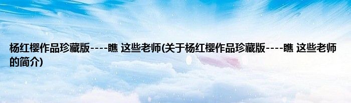 本文关于杨红樱作品珍藏版----瞧,这些老师的简介就讲解完毕,希望对大家有所帮助。