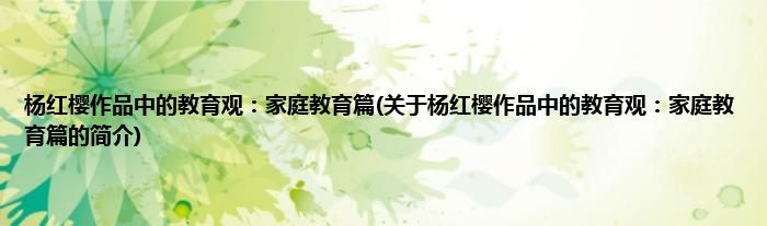 本文关于杨红樱作品中的教育观:家庭教育篇的简介就讲解完毕,希望对大家有所帮助。