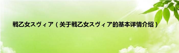 本文关于戦乙女スヴィア的基本详情介绍就讲解完毕,希望对大家有所帮助。