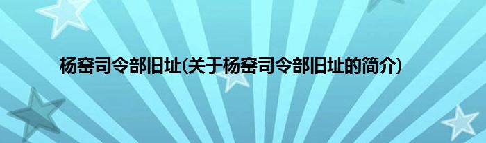 杨窑司令部旧址(关于杨窑司令部旧址的简介)
