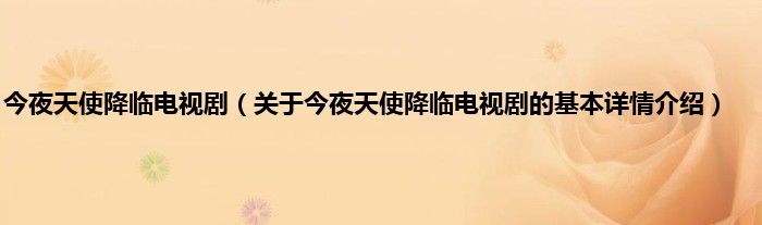 本文关于今夜天使降临电视剧的基本详情介绍就讲解完毕,希望对大家有所帮助。