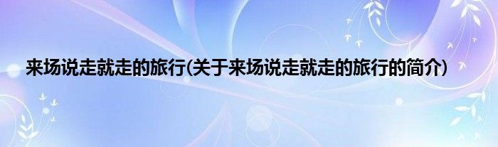 本文关于来场说走就走的旅行的简介就讲解完毕,希望对大家有所帮助。