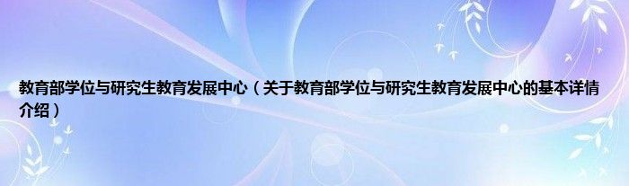 教育部学位与研究生教育发展中心(关于教育部学位与研究生教育发展中心的基本详情介绍)