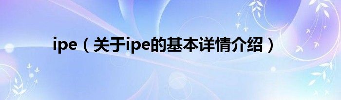 大家好我是小蝌蚪,ipe,关于ipe的基本详情介绍很多人还不知道,那么现在让我们一起来看看吧!
