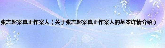 本文关于张志超案真正作案人的基本详情介绍就讲解完毕,希望对大家有所帮助。