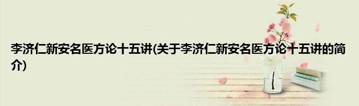 本文关于李济仁新安名医方论十五讲的简介就讲解完毕,希望对大家有所帮助。