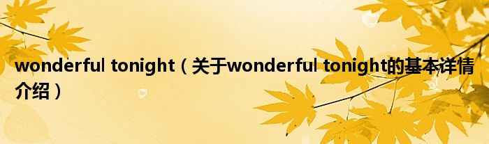 本文关于wonderful tonight的基本详情介绍就讲解完毕,希望对大家有所帮助。