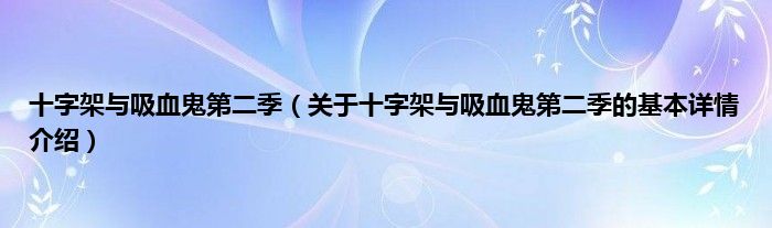 本文关于十字架与吸血鬼第二季的基本详情介绍就讲解完毕,希望对大家有所帮助。