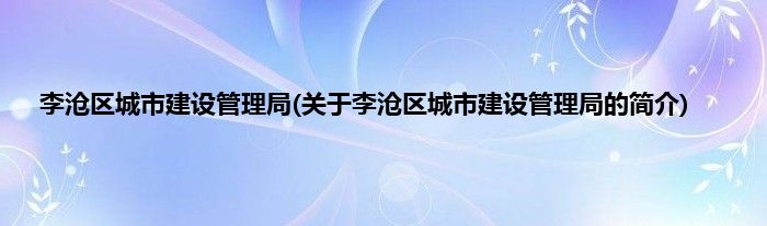 大家好,李沧区城市建设管理局,关于李沧区城市建设管理局的简介很多人还不知道,现在让我们一起来看看吧!